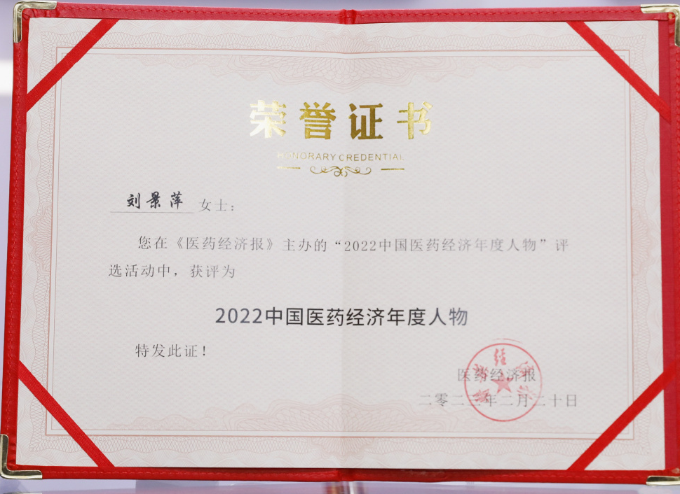永乐高药业集团董事长刘景萍当选“2022中国医药经济年度人物”